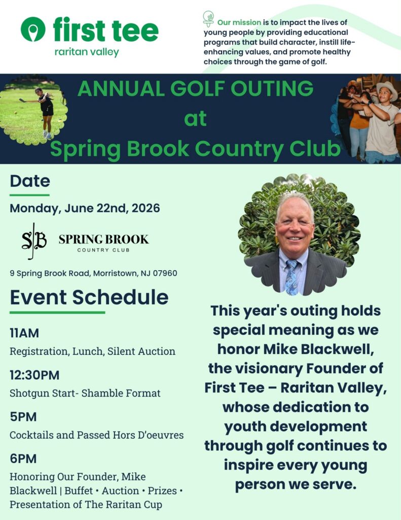 We are proud to honor Mike Blackwell, the Founder of First Tee – Raritan Valley, at this year’s outing — celebrating the vision and dedication that continues to shape young lives every day.