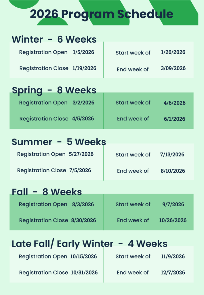 Winter Class Registration opens Monday, January 5th @ 12:00PM